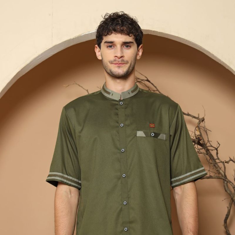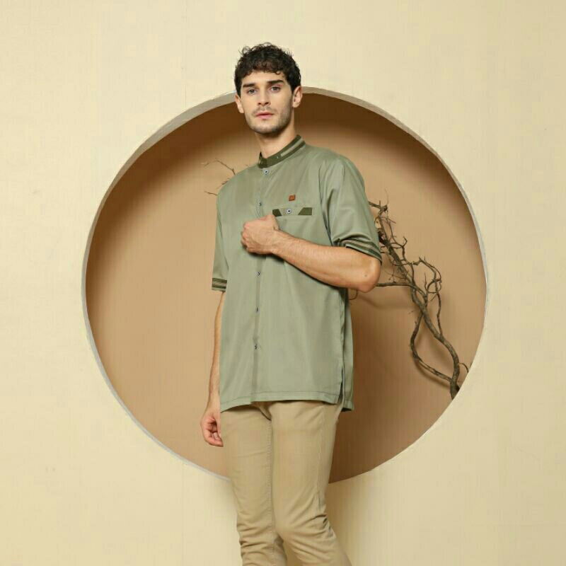 ADRIKNI BAJU KOKO PRIA FASHION MUSLIM ATASAN KEMEJA PRIA LENGAN PENDEK WARNA SAGE