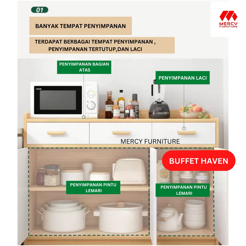 Mercy Furniture Cabinet Rak Dapur Tempat Penyimpanan Rak Serbaguna