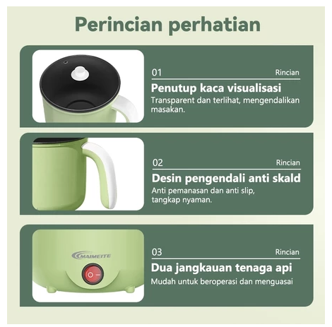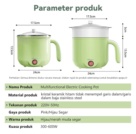 Panci Listrik Serbaguna 1.8L multifungsi stainless Panci Elektrik non-stick