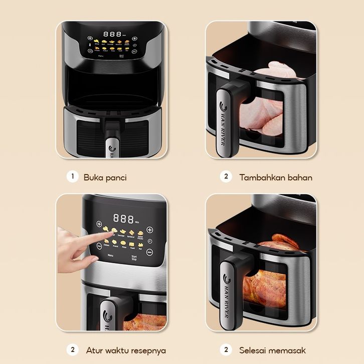 Air Fryer Touch screen Digital 8L kapasitas besar 650W Low Watt Penggoreng Makanan Serbaguna