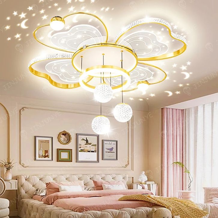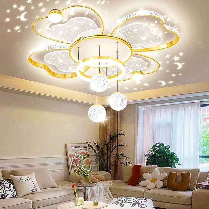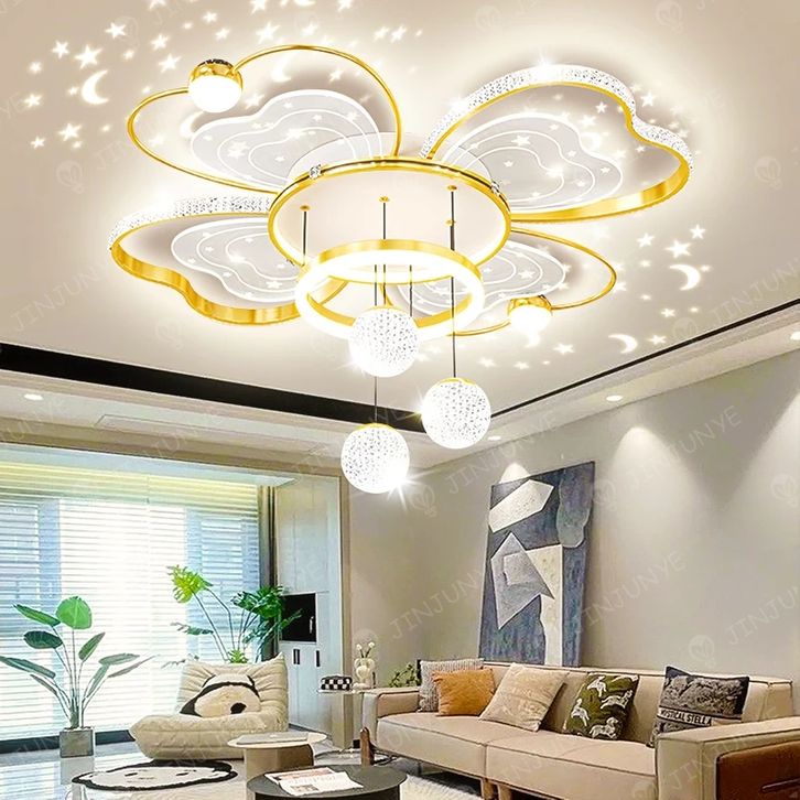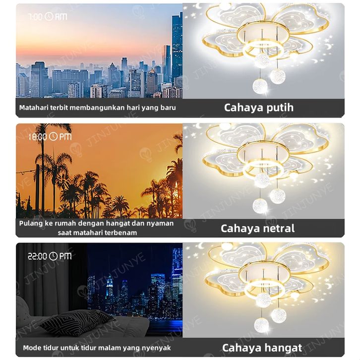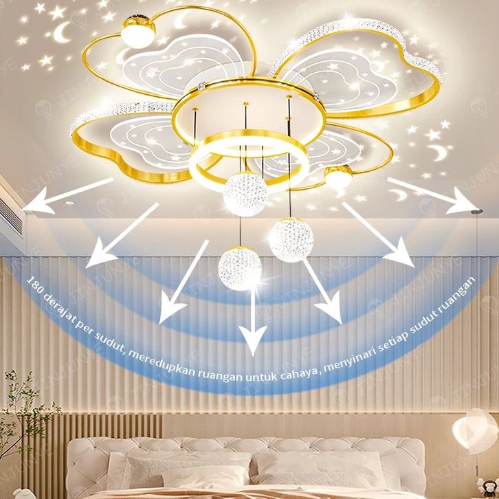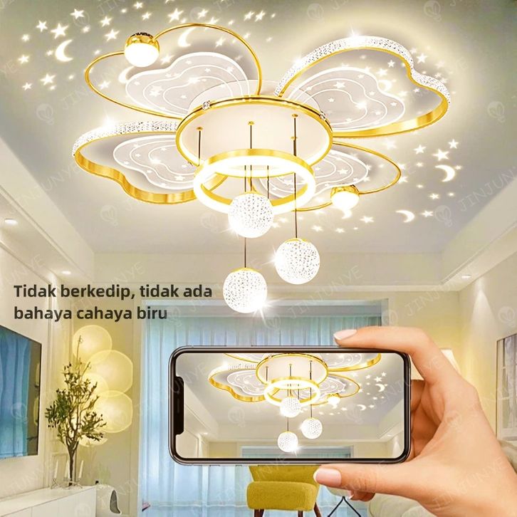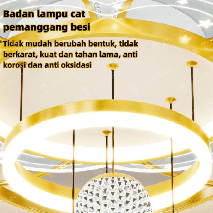 Lampu Gantung Ruang Tamu Aesthetic Mewah Remote Control Lampu Hias Gantung Emas LED 3 Warna 100cm besar Lampu Ruang Tamu