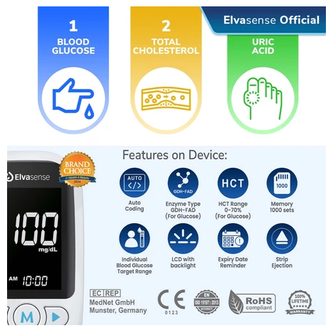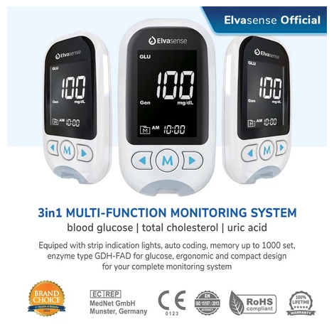 Alat Cek 3in1 Elvasense (Gula Darah, Kolesterol & Asam Urat)