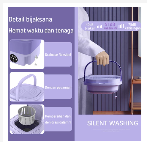 Mesin Cuci Mini Portable 2 Tabung 8L Mesin Cuci Lipat Otomatis Mesin Pengering Pakaian Sterilisasi Cahaya Biru