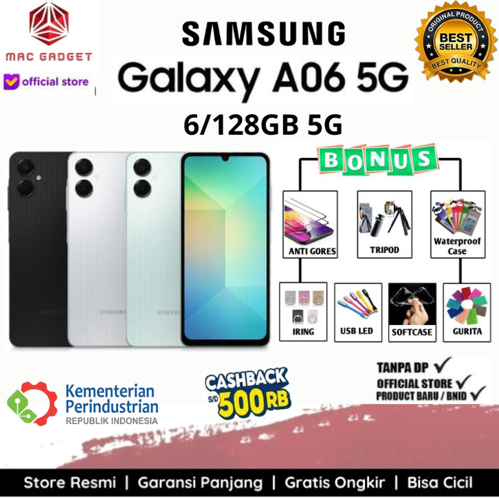Official Store 🔥 Samsung Galaxy A06 5G 6/128GB Desain - Ukuran: 6,7 inch - Teknologi: 2GHz,1.8GHz, 90Hz - Rosolusi: HD+