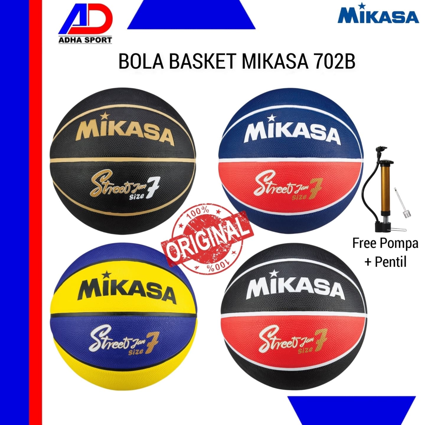 Free Pompa + Pentil ! Bola Basket Mikasa 702B / 702 B Basketball BB702B Original