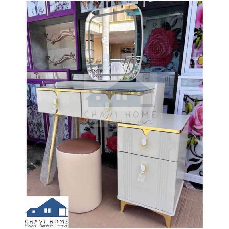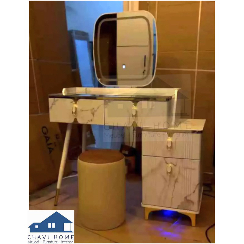 CHAVIHOME Meja rias classic meja rias dengan lampu led otomatis lemgkap kursi