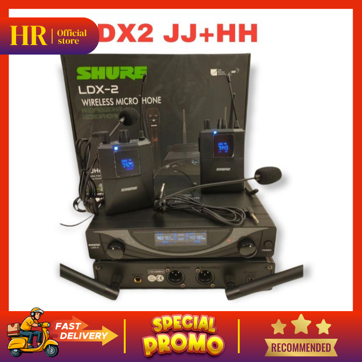 Mic Wireless Shure LDX2 LDX 2 2MIC CLIP ON + HEADSET MULTI CHANNEL