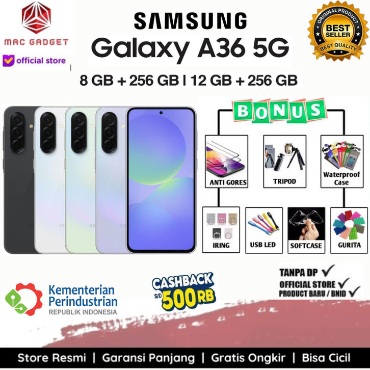 Official Store 🔥 Samsung Galaxy A36 5G 12/256GB | 8/256GB Display - Size: 6,7 inch - Technology: Super Amoled Resmi