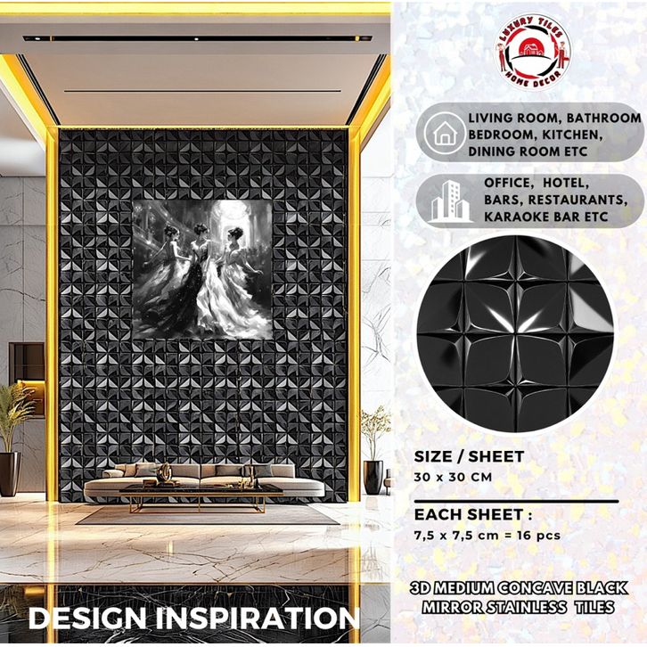 (TERLARIS)3D Stainless Wall Tiles CONCAVE shape 3 Ukuran S M L Dekorasi Dinding Ruangan Mewah DIY Geometric