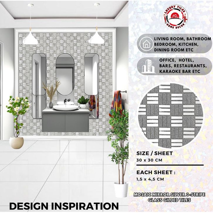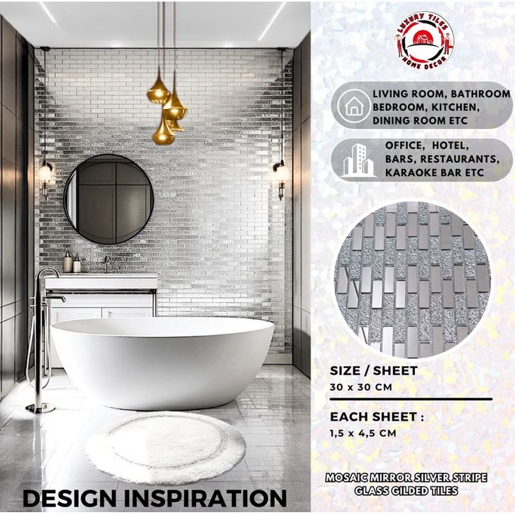 (TERLARIS)7 Mosaic Glass Stripe Mirror Mix Dekorasi Dinding Mewah Viral Wall Tiles Furniture Counter Resepsi