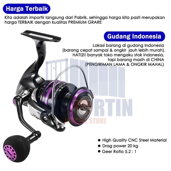 Reel HP 1000–7000 | Gulungan Pancing Full Metal, Kuat & Murah, Warna Ungu
