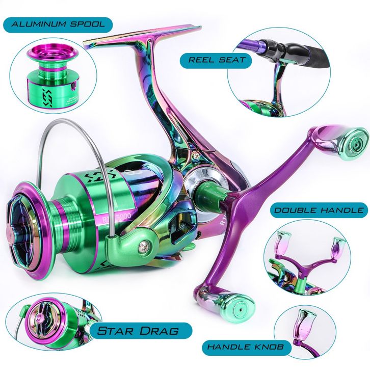 Reel Pancing Metal 1000–5000 | Max Drag 10Kg, Reel Spinning + Free Senar & Handle Ganda
