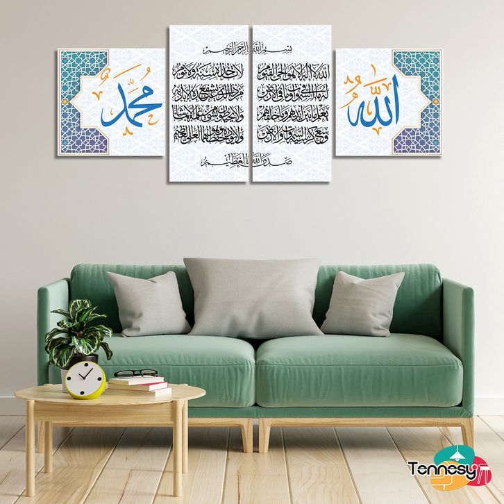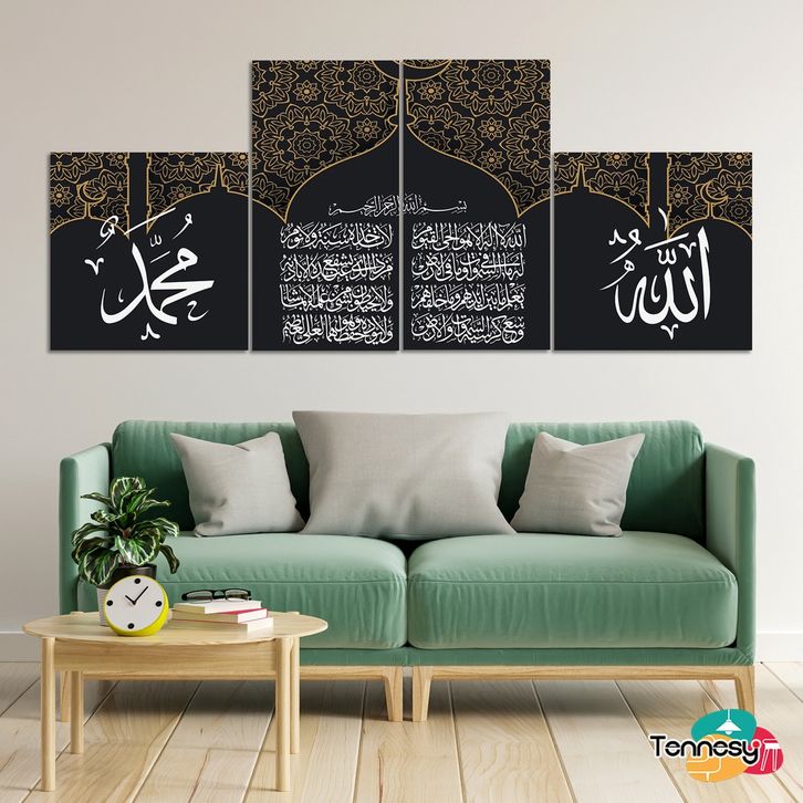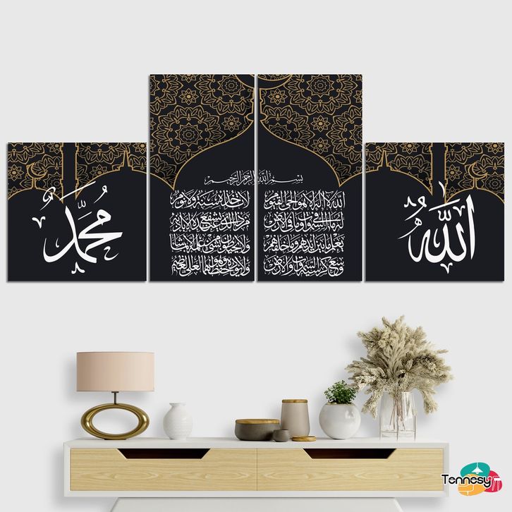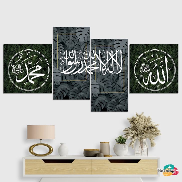 TENNESY HIASAN DINDING KALIGRAFI TAHLIL ALLAH MUHAMMAD SET 4 PANEL WALL DECOR DEKORASI KAMAR RUMAH