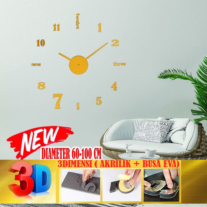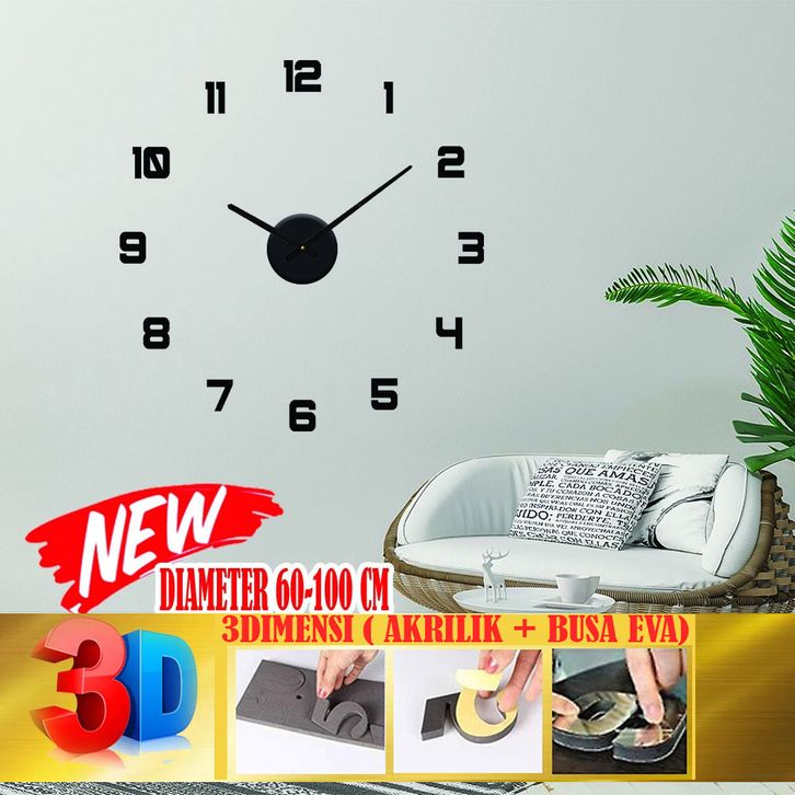 Jam Dinding Besar DIY Diameter 60-100 cm Akrilik Tebal Jarum Jam 16CM Jarum Menit 24 CM promo jamdinding estetik terlari