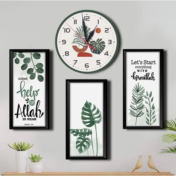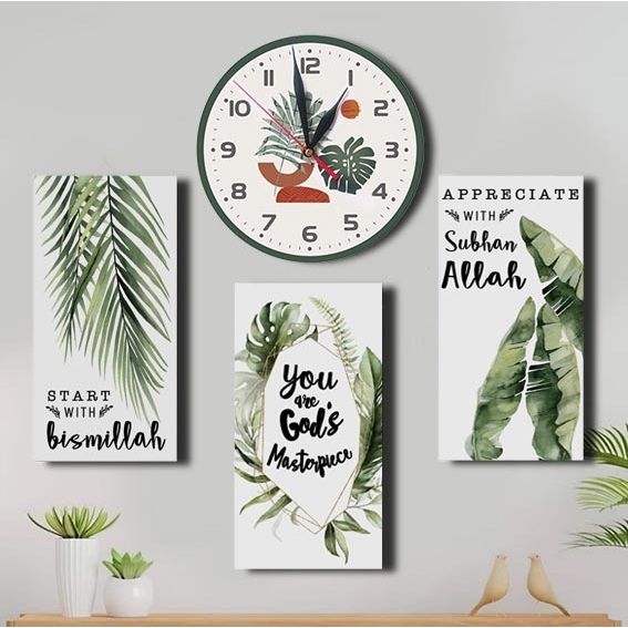 Jam Dinding Unik Quotes Allah Set 4pc / Pajangan Dinding Bismillah Dekorasi Ruang Tamu promo jamdinding estetik terlaris
