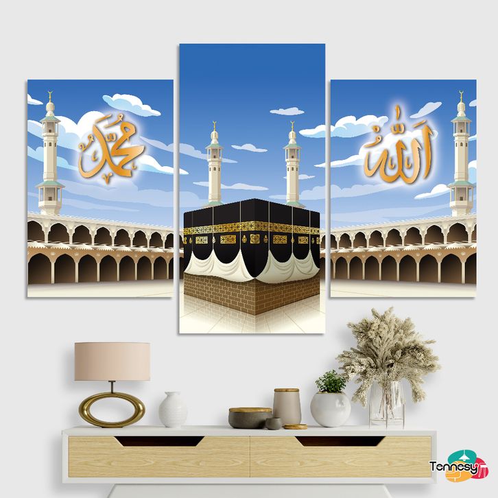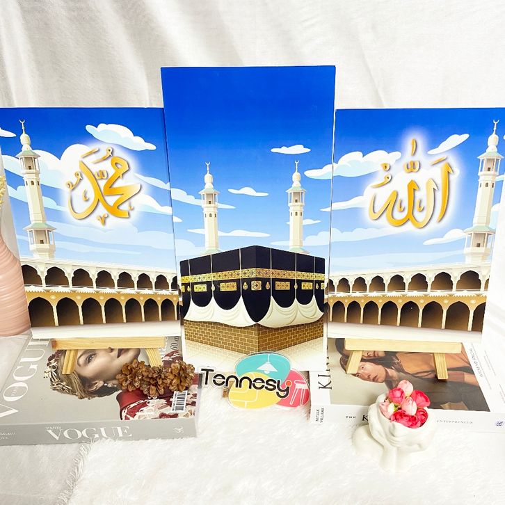 TENNESY Hiasan Dinding Aesthetic1 Set Kabah Islamic Makah Kaligrafi Allah Dekorasi Mushola Rumah