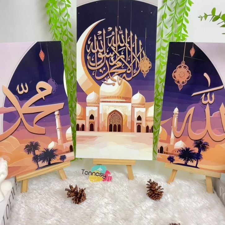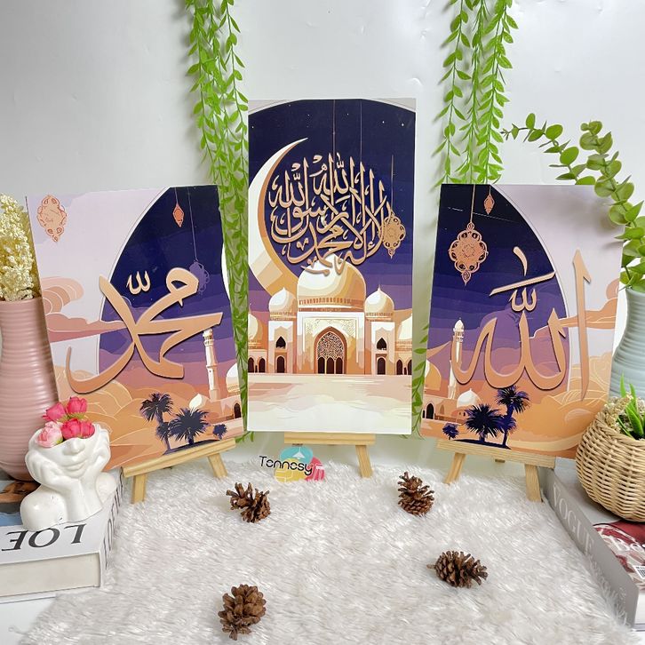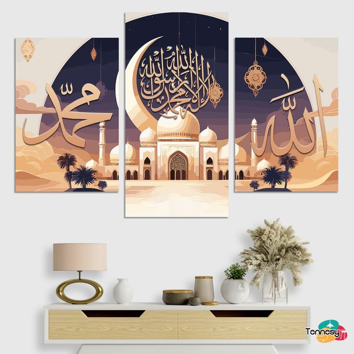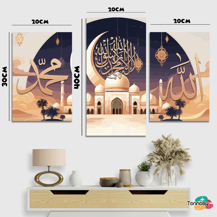 TENNESY Hiasan Dinding Aesthetic 1 Set Islami Kaligrafi Allah Muhammad 3 Panel Besar Wall Decor