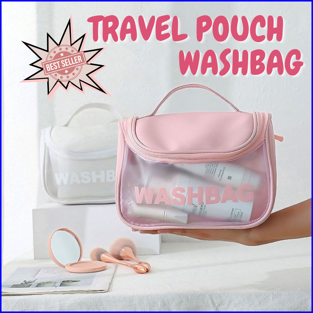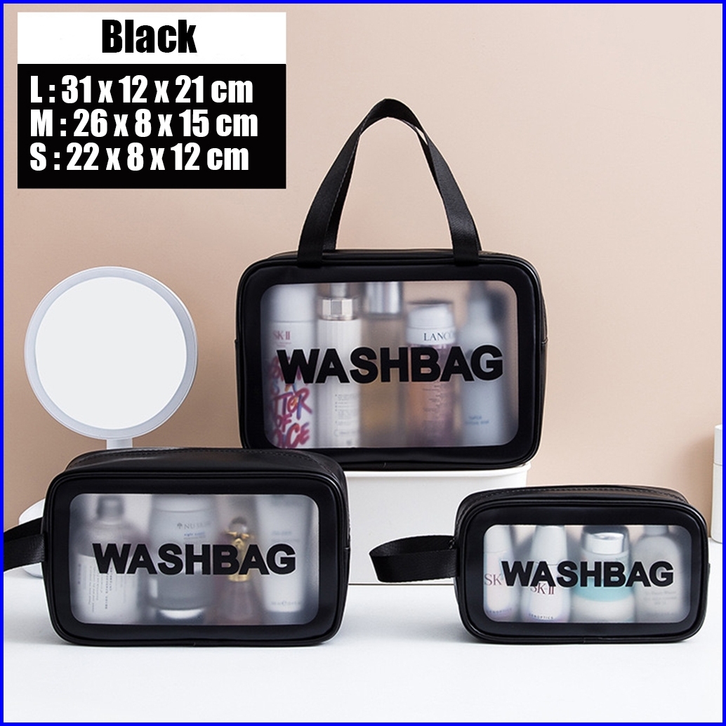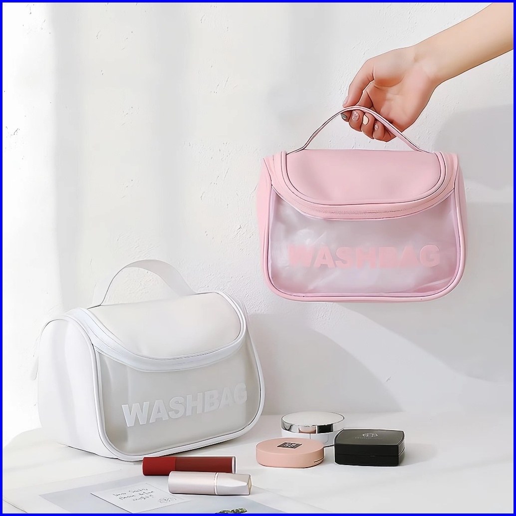 Mendale Pouch Kosmetik Transparan Tulisan Washbag Tas Travel Make Up Bag Organizer Waterproof - Pwb