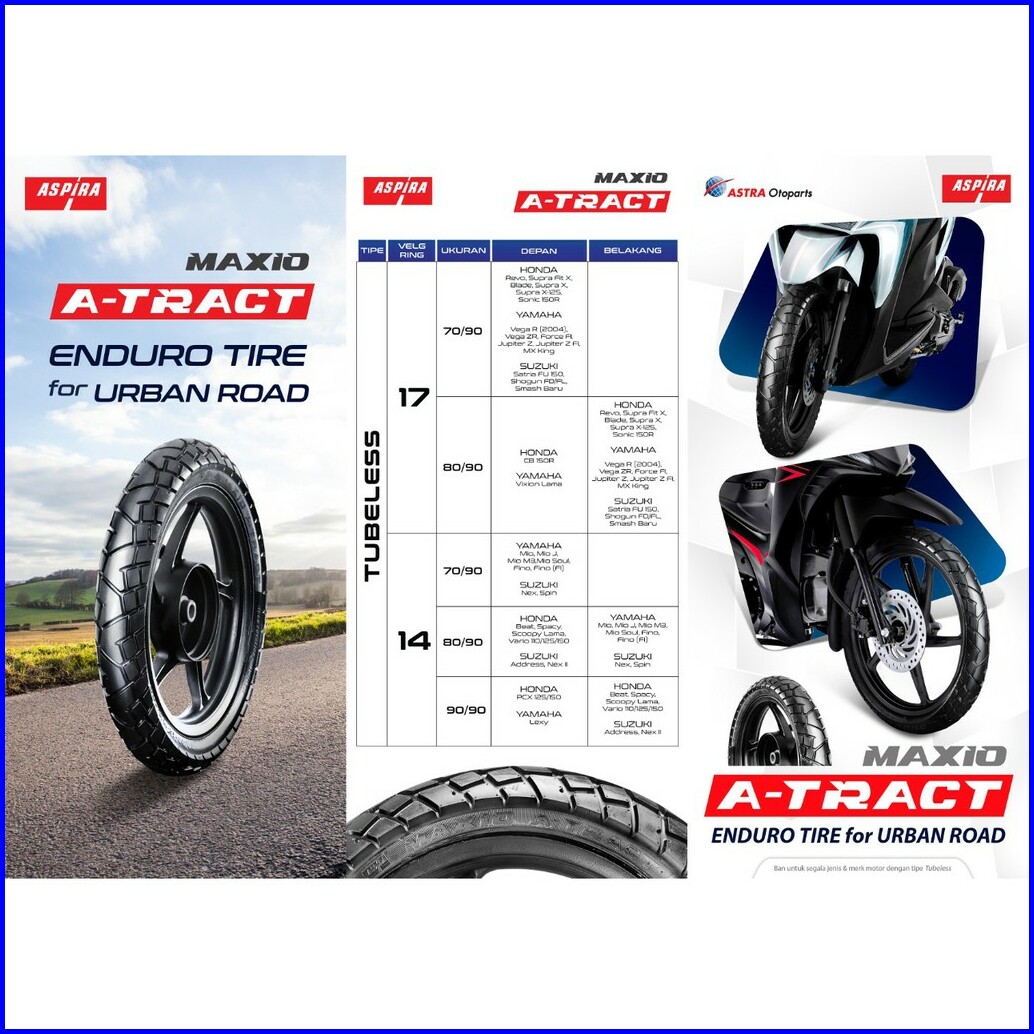 Aspira Maxio A-tract 80 90-14 Tubeless Ban Depan Motor Vario Ban Belakang Mio