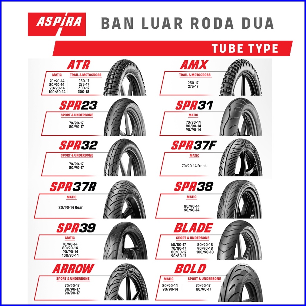 Ban Aspira Spr 31 Tube Type 70 90-14 Untuk Ban Depan Standard Yamaha Mio Mio J Mio M3 Mio Soul Fino Fino Fi Suzuki Nex S