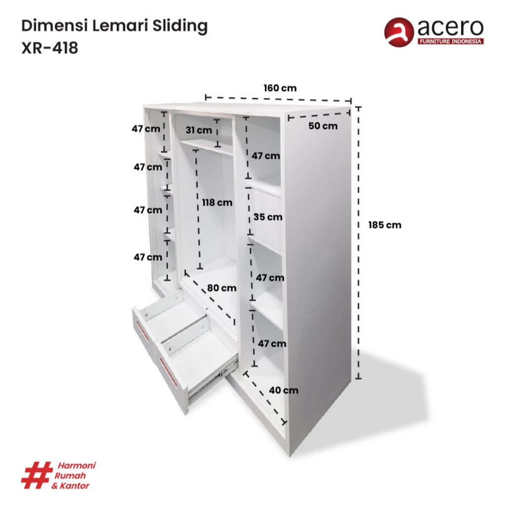 FREE PACKING KAYU - Lemari Pakaian Besi Minimalis XR 4 Pintu Sliding
