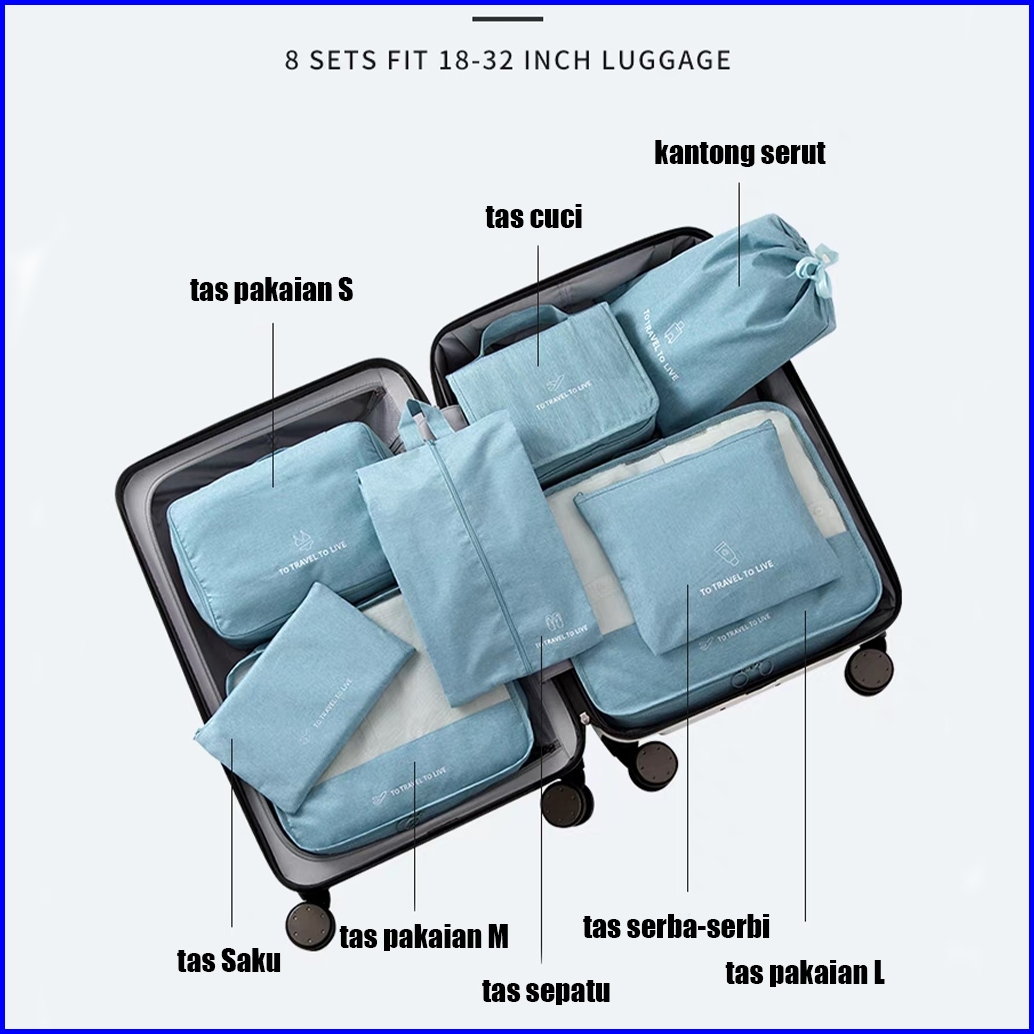 Mendale Best Tas Travel Organizer 8in1 Storage Bag Luggage Bag Packing Lebih Bagus Rapi - 8in1