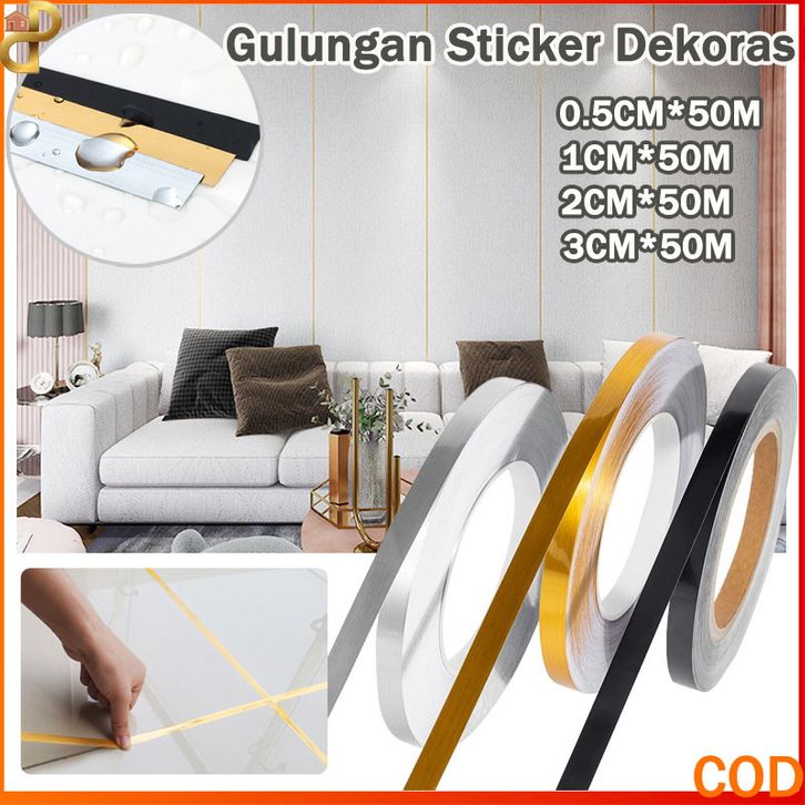 50M Gulungan Stiker Pembatas Keramik / Roll Gulungan Sticker Dekorasi Lantai Strip / Waterproof Floor Tile Stickers / 0.