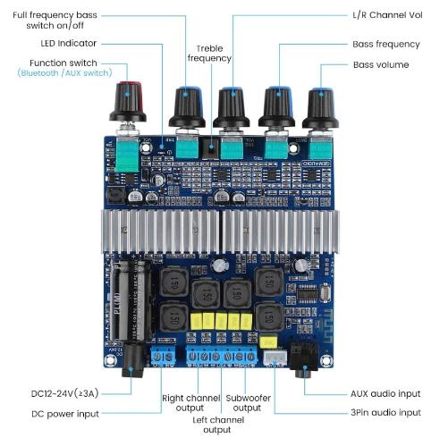 Original Aiyima TPA3116D2 Amplifier 2.1 Bluetooth 2'50 + 100 Subwoofer