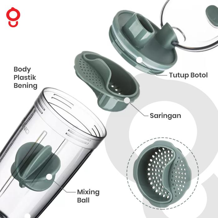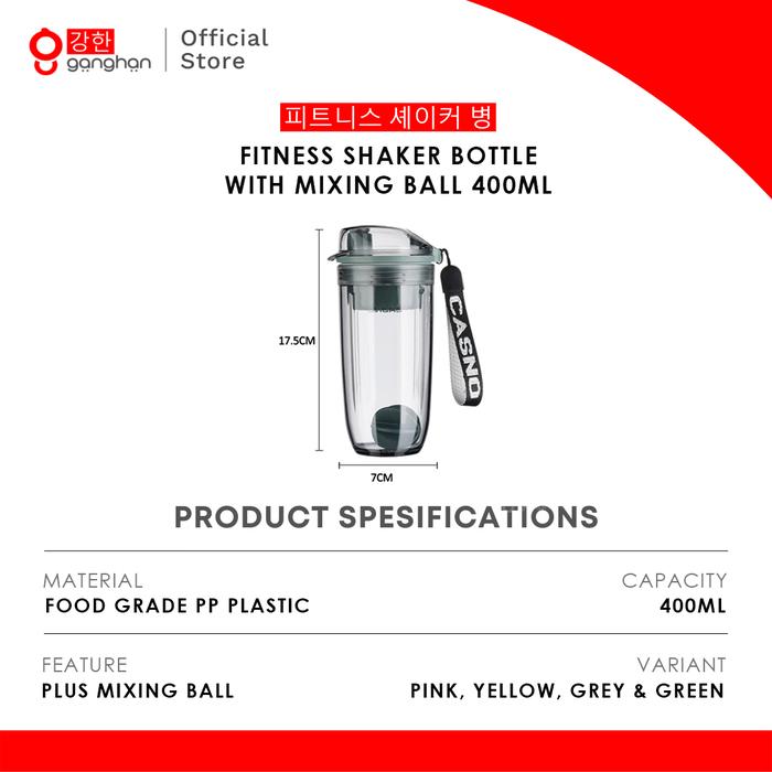 Ganghan Botol Minum Gym Fitness Olahraga | Protein Bottle Shaker 400ml - Abu-abu