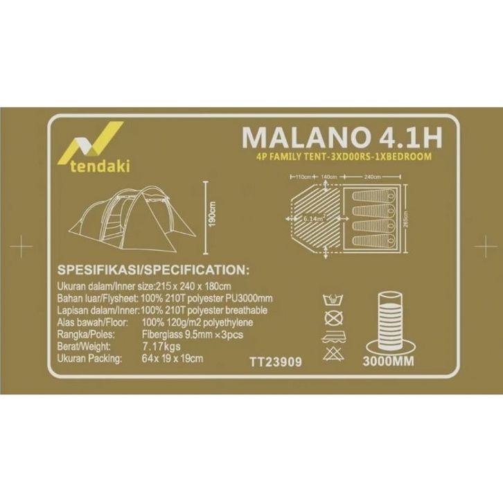 Tenda camping tendaki malano 4.1 dan 4.1H kapasitas 4-5 orang double layer