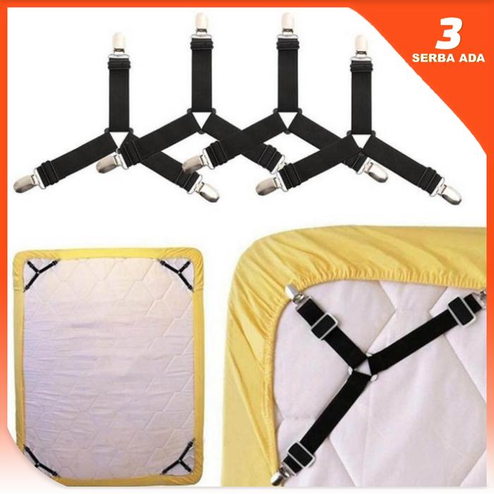 1 Set Isi 4 Pcs Pengait Sprei Kasur / Pengait Sudut Sprei / Penjepit Sprei Kasur / Jepitan Sprei - Hitam