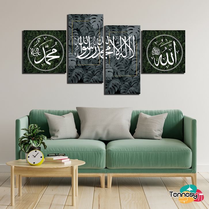 TENNESY HIASAN DINDING KALIGRAFI TAHLIL ALLAH MUHAMMAD SET 4 PANEL WALL DECOR DEKORASI KAMAR RUMAH