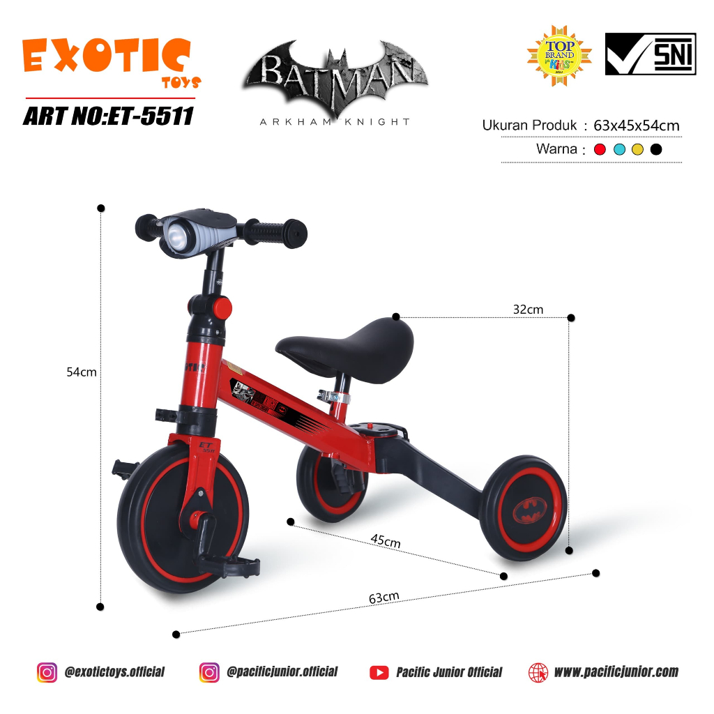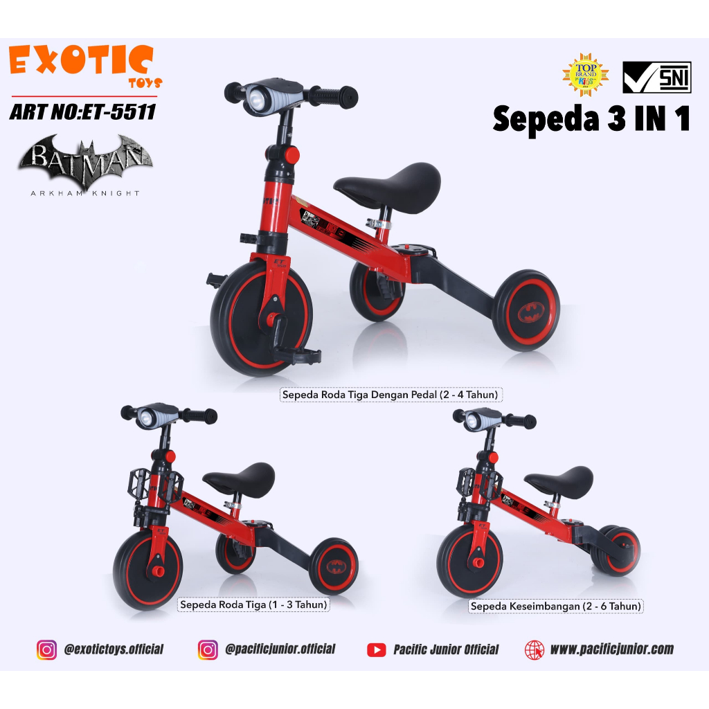 Mainan Anak Sepeda Exotic Balance Bike Anak 3 in 1 / Sepeda Anak 3 Roda Serba Murah dan Kokoh
