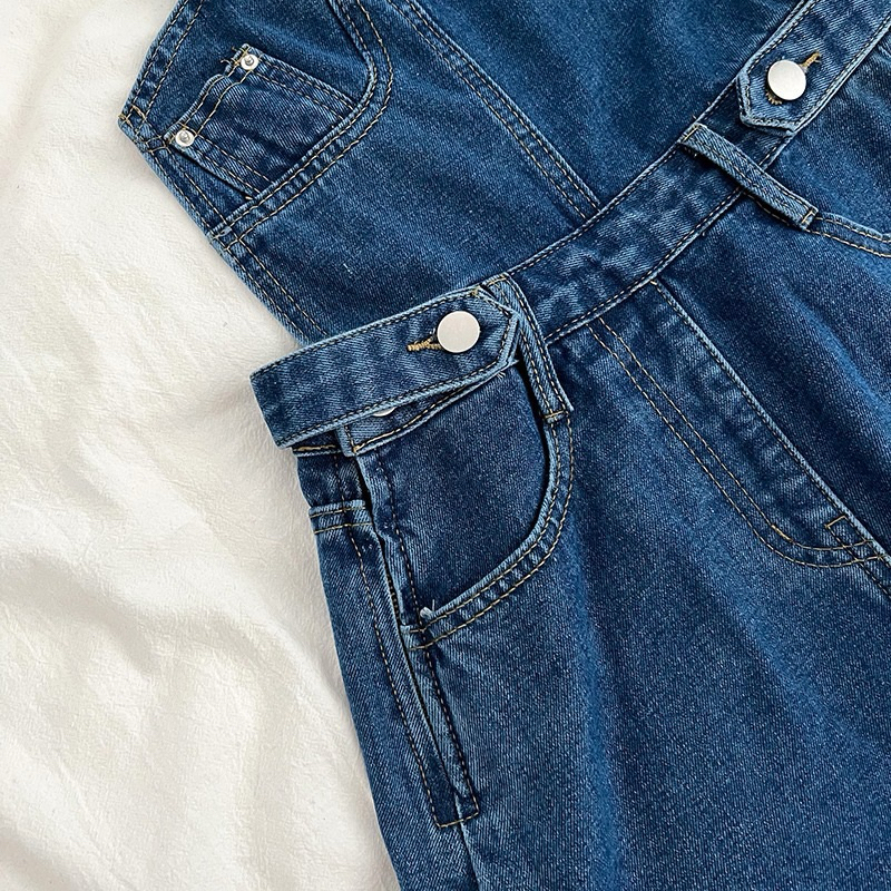 CELANA JEANS JUMPSUIT PENDEK WANITA FASHIONABLE BAHAN PREMIUM LEMBUT | CELANA OVERALL PENDEK WANITA DARK BLUE TERLARIS