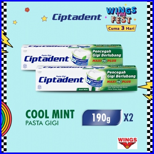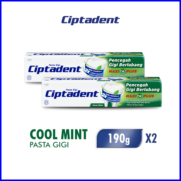 Ciptadent Pasta Gigi Maxi 12 Cool Mint Tube 190 Gr X2