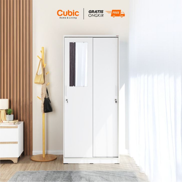 Cubic Lemari Pakaian Sliding Minimalis / Wardrobe Baju / LUNA SL 80 - Putih
