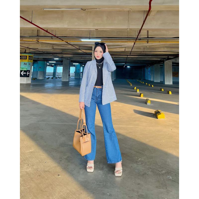(Gratis Ongkir) High Waist Jeans Streach Wanita Cutbray || Korean Style Straight Loose Cutbray Wanita Premium || Cutbray