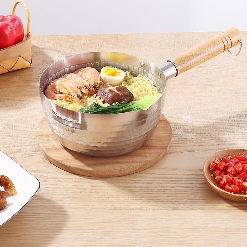BMW Kitchenware Panci Milk Pot Lily Panci Serbaguna Bahan Stainless Steel Gagang Kayu Tahan Panas Panci Rebus Mie Susu