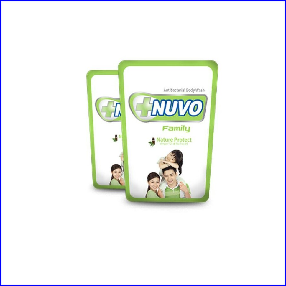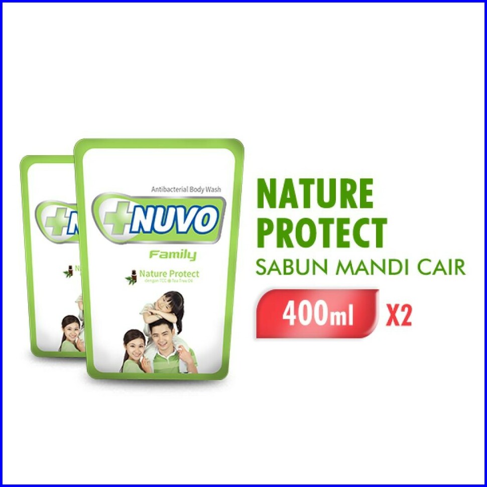 Nuvo Family Membersihkan Kulit Sabun Mandi Cair Hijau Nature Protect Pouch 400 Ml X2