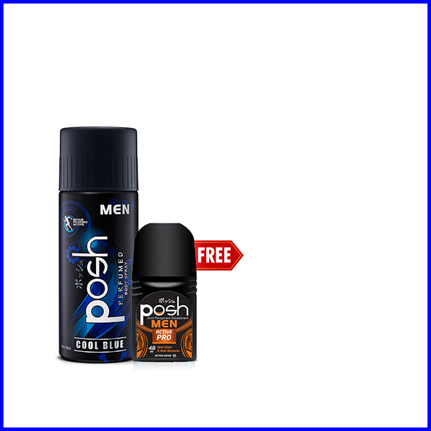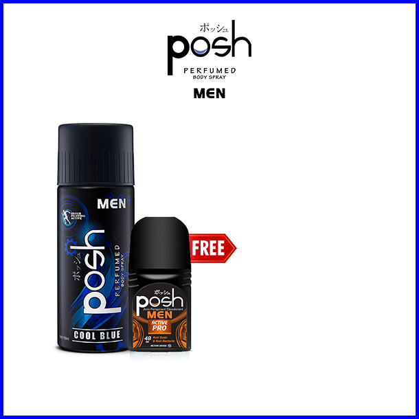 Buy 1 Get 1 Posh Fresh Spray Men Cool Blue Botol 150ml - Free Roll On Posh Men Active Pro 50 Ml