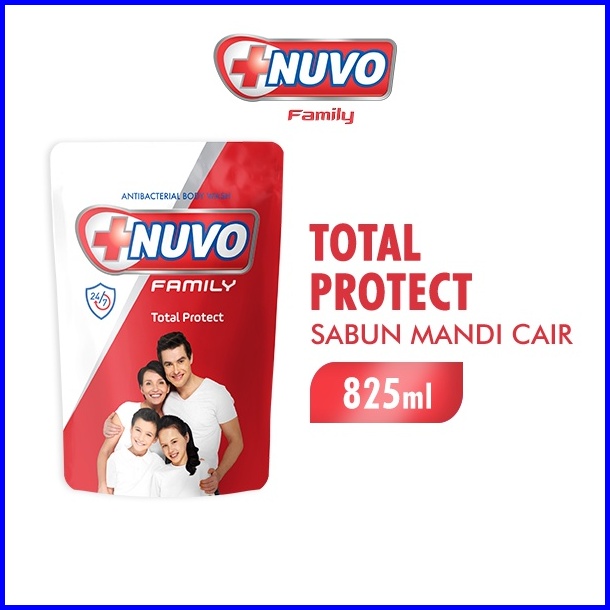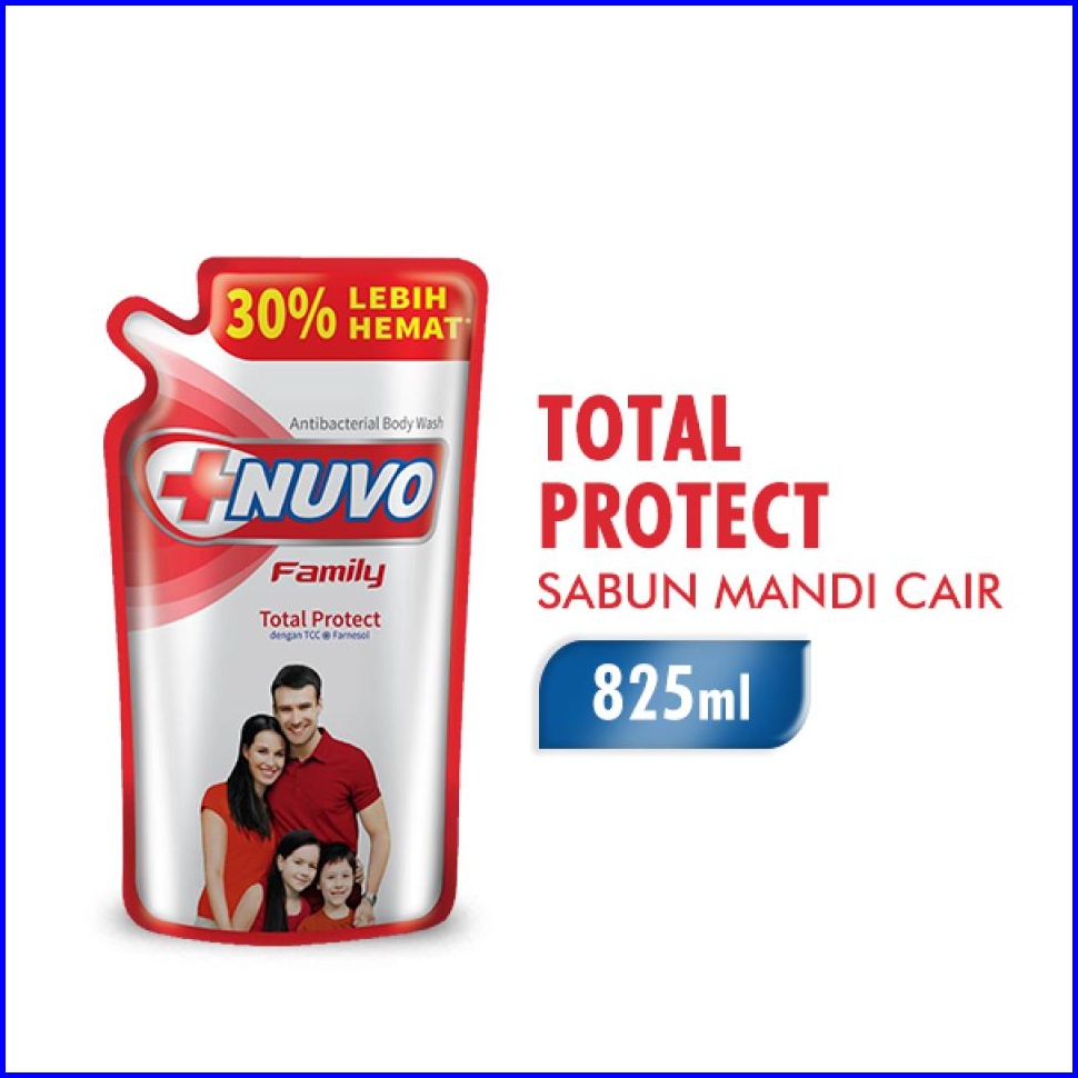 Nuvo Family Sabun Mandi Cair Merah Perlindungan Kulit Optimal Total Protect Pouch 825 Ml