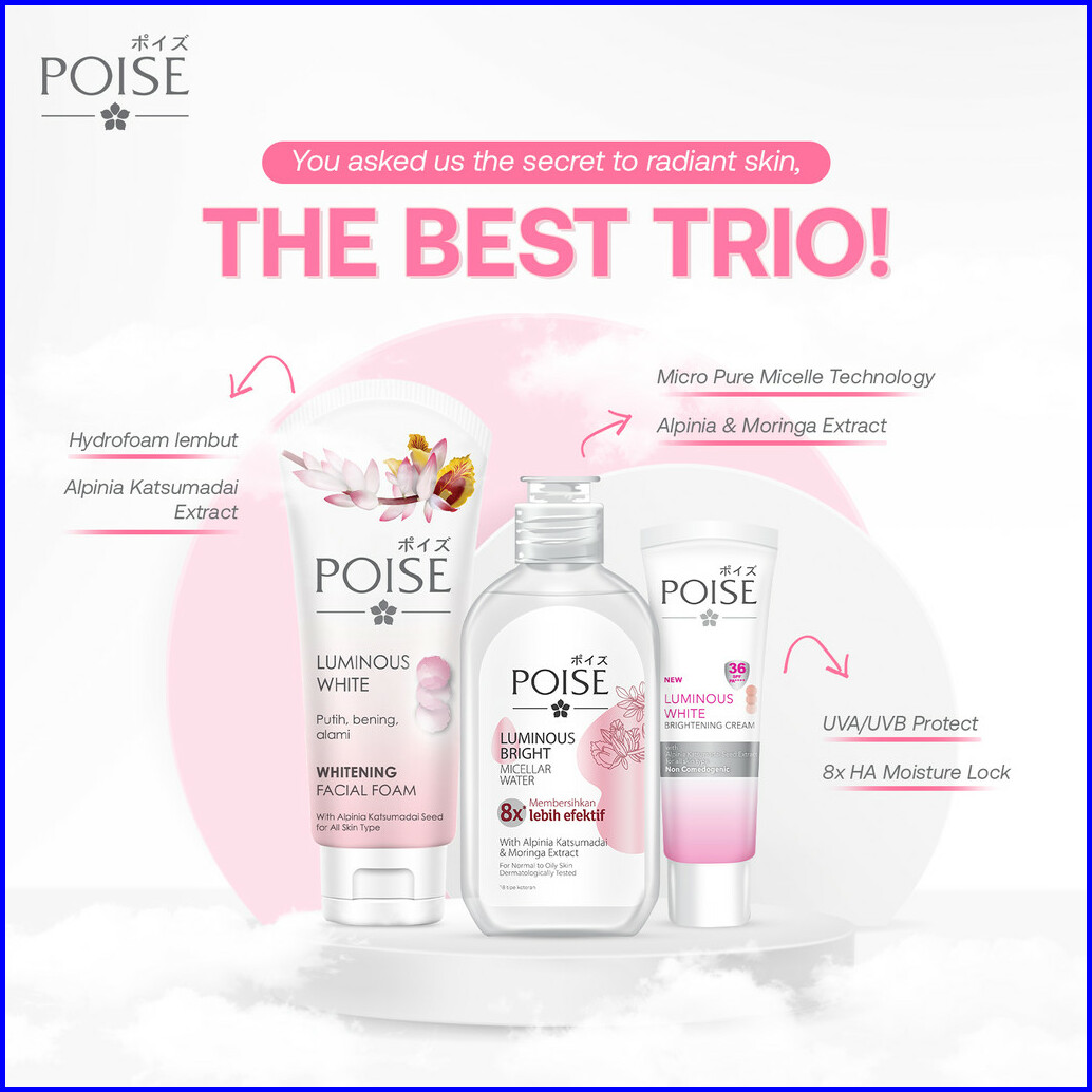 Poise Facial Foam Sabun Cuci Muka Whitening Luminous White Tube 100 Gr X2