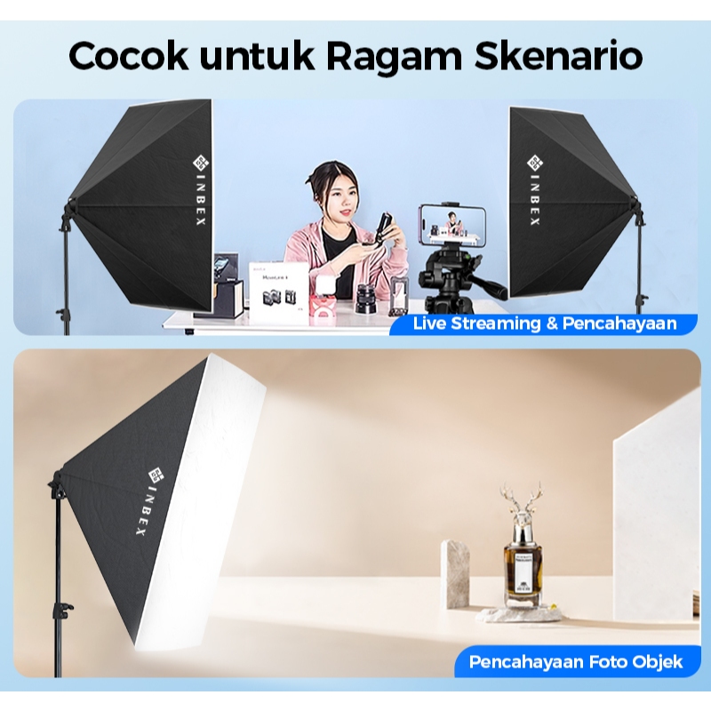 Lighting Konten Softbox Studio Live ILM2 6000K Lampu 3 Suhu Warna Background Foto