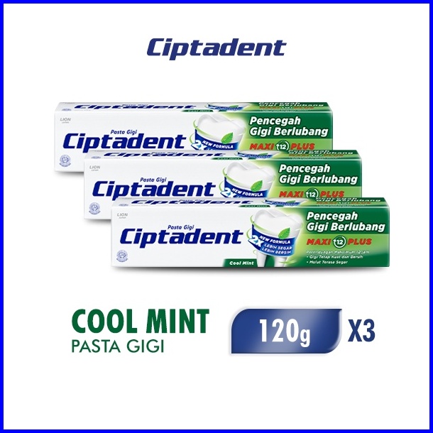 Ciptadent Pasta Gigi Maxi 12 Cool Mint Tube 120 Gr X3