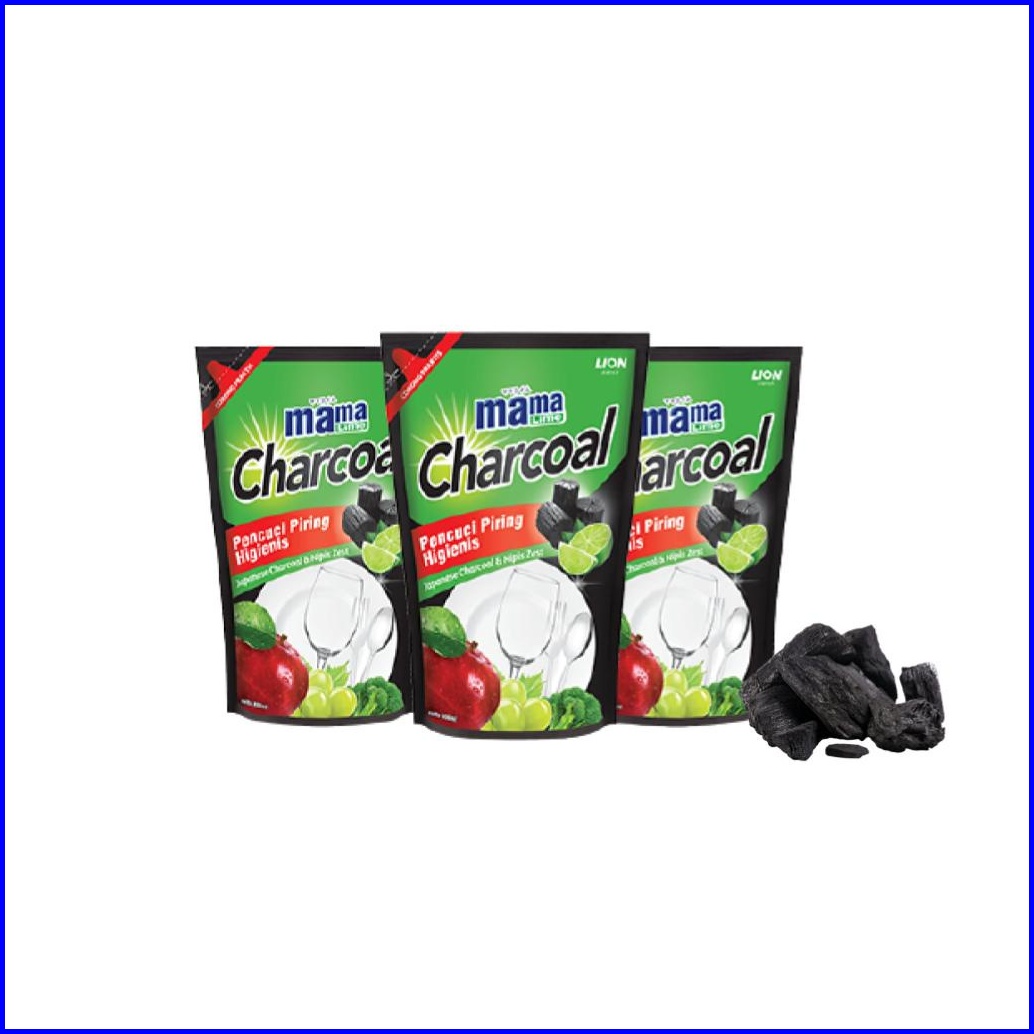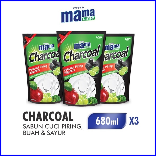 Mama Lime Sabun Cuci Piring Charcoal Pouch 680 Ml X3
