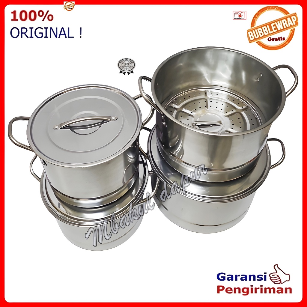 Panci Stainless Tinggi Plus Steamer Panci Liwet Nasi Dandang Kukus Nasi Stockpot Stainless