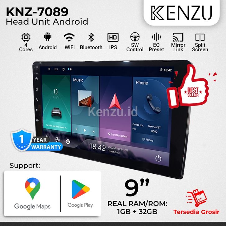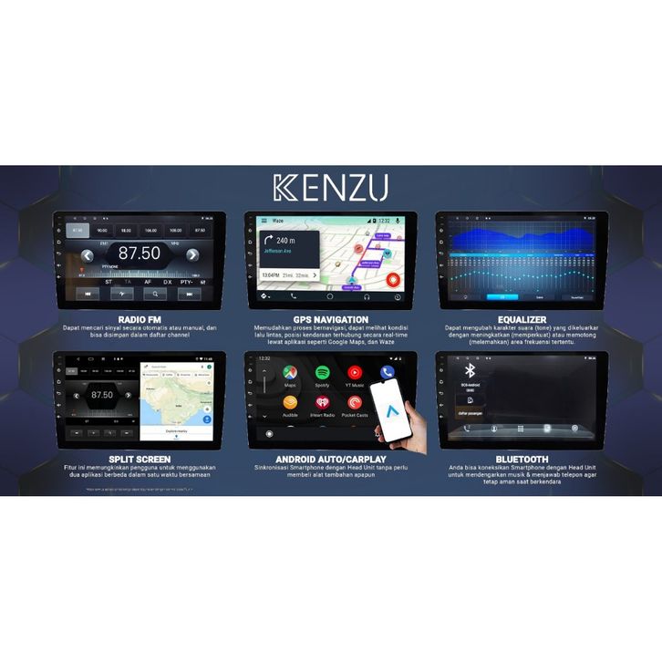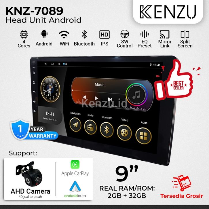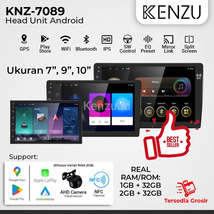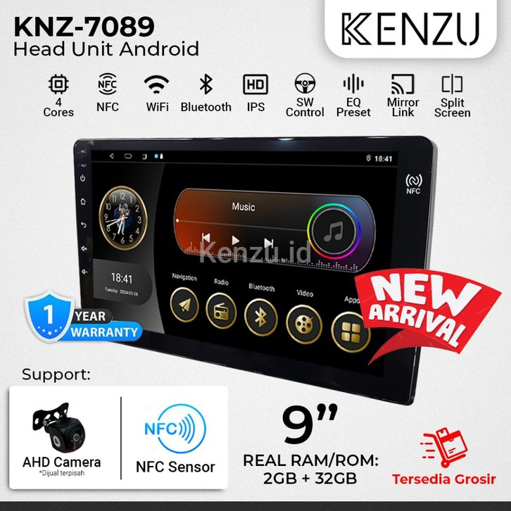KENZU KNZ-7089 Head Unit Android Double DIN 7"/9"/10" | 1+32 & 2+32, Android Auto, CarPlay, AHD, NFC