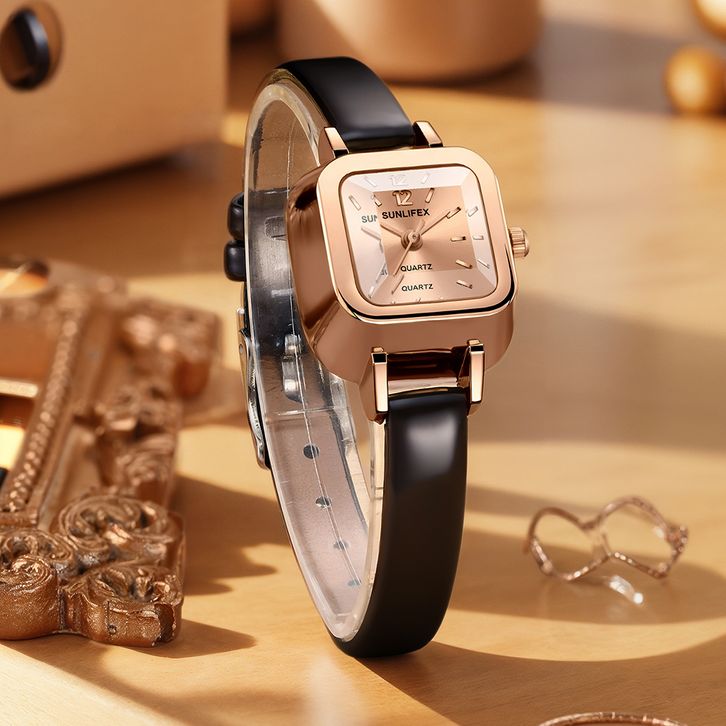 Sunlifex Jam Tangan Wanita 3344 Korea Antik Persegi Mini Tali Kulit Jam Tangan Cewek Original