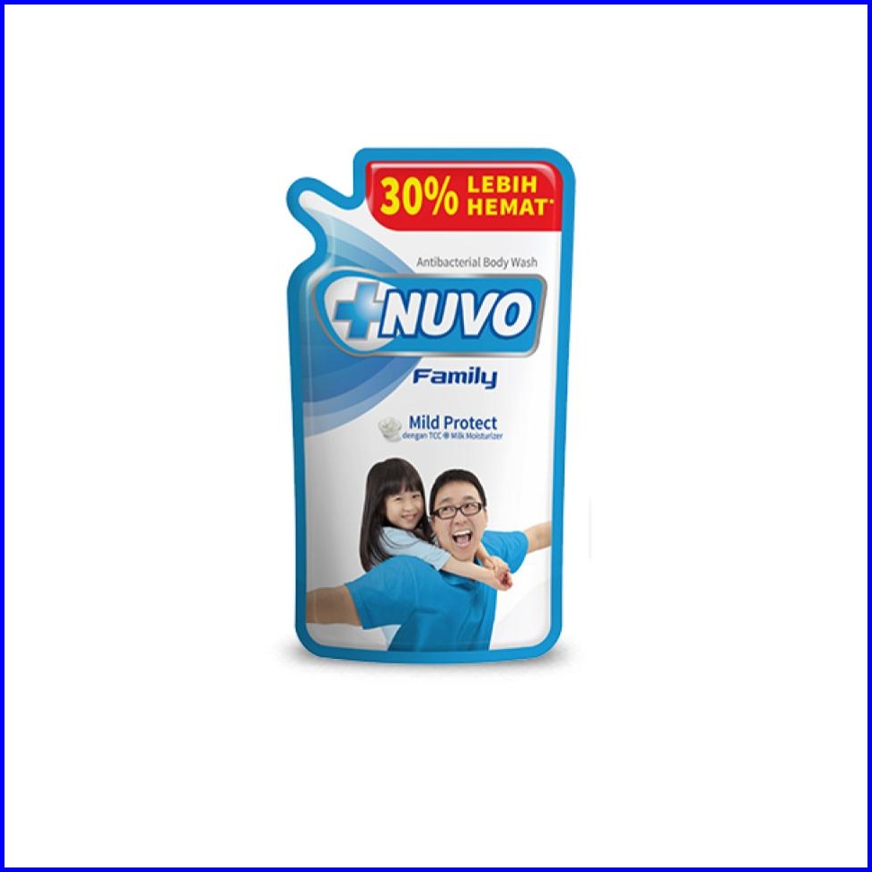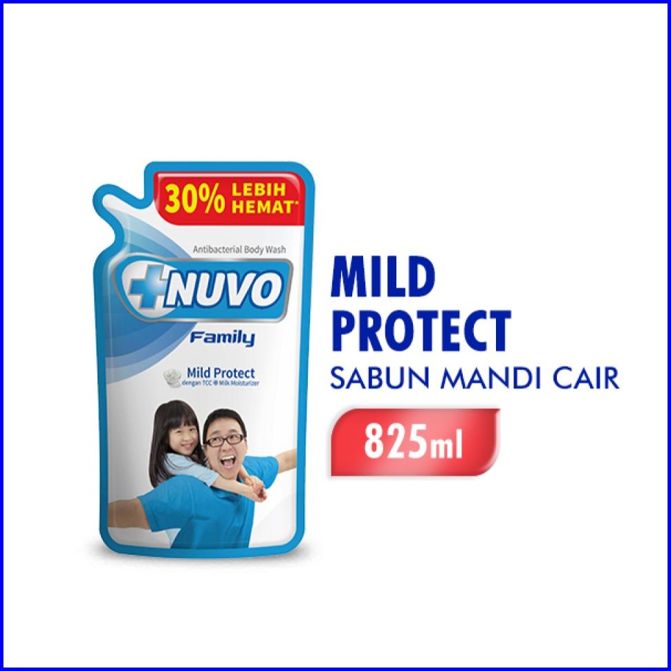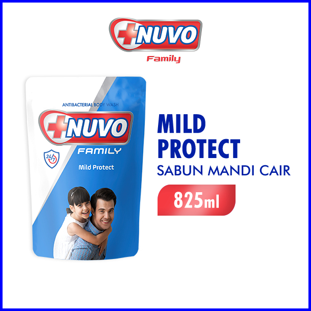 Nuvo Family Mencerahkan Dan Meremajakan Kulit Sabun Mandi Cair Biru Mild Protect Pouch 825 Ml
