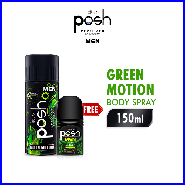 Buy 1 Get 1 Posh Spray Men Green Motion Botol 150ml - Free Roll On Posh Men Active Sport 50 Ml